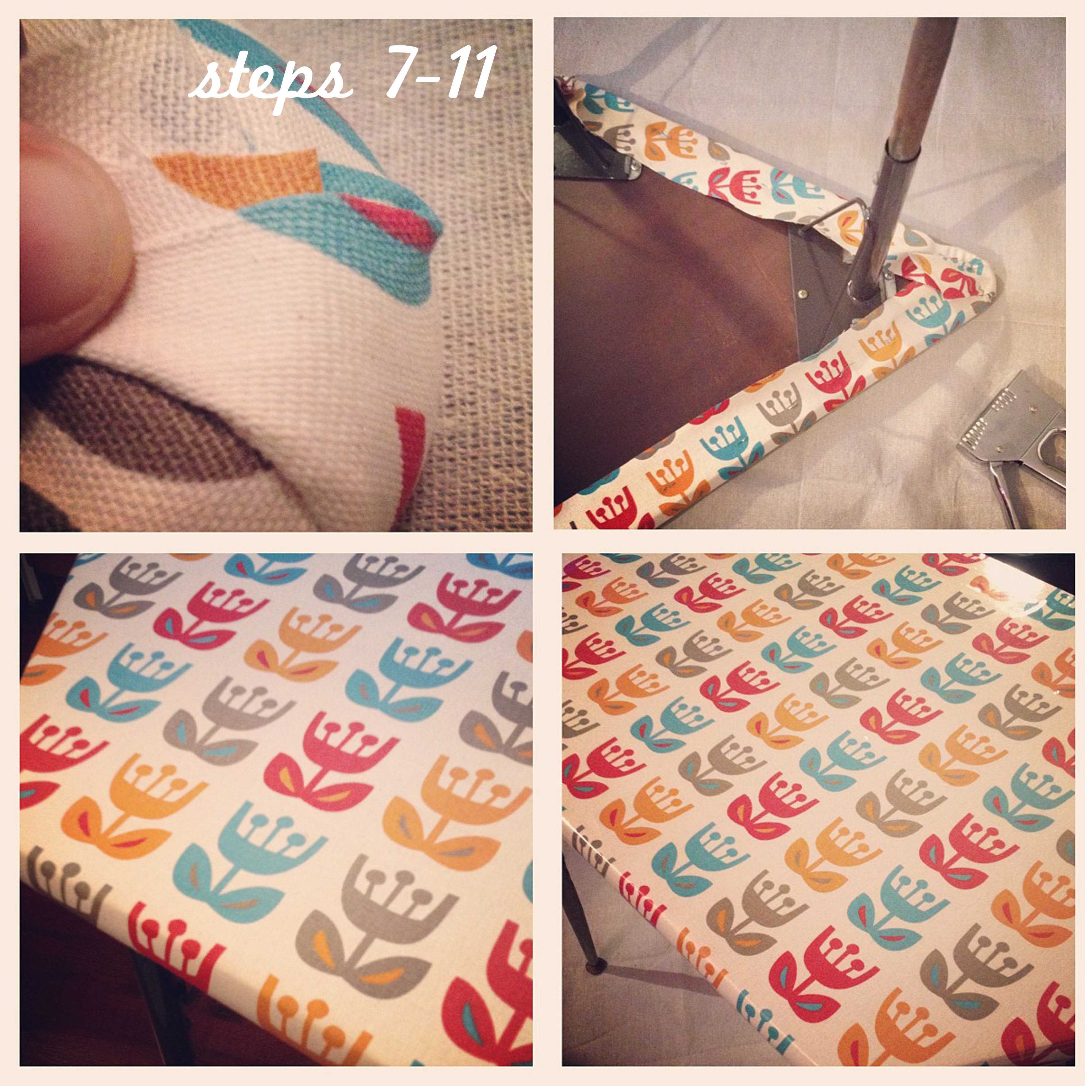 9. Flip: Turn your table right side up & use a lint roller to catch any stray fabric bits or dust (or pet hair) from the fabric. It will drive you nuts if you accidently trap a hair or thread forever in the next step!