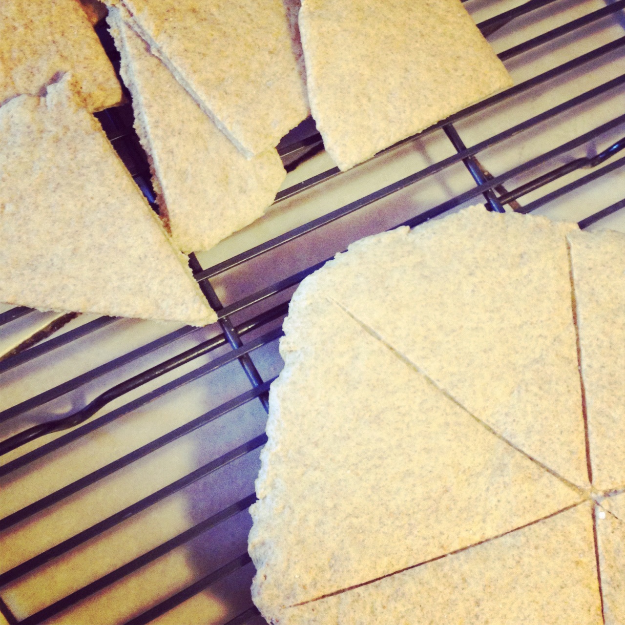1. Preheat oven to 350 degrees (F). Then in a large bowl, combine the flours, oil, baking soda & salt. Add enough buttermilk (I used it all) to make a stiff dough.