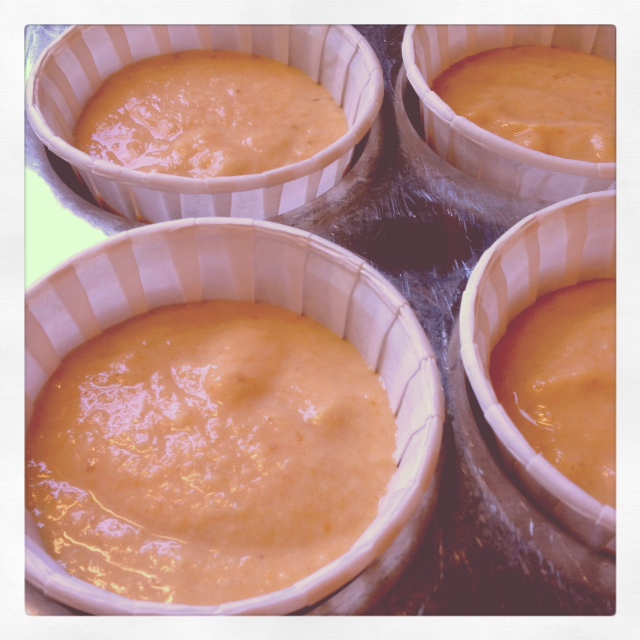3. Spoon the batter into the muffin pan, filling cups a generous half full. (I got 8 frosty treats out of my batter.)