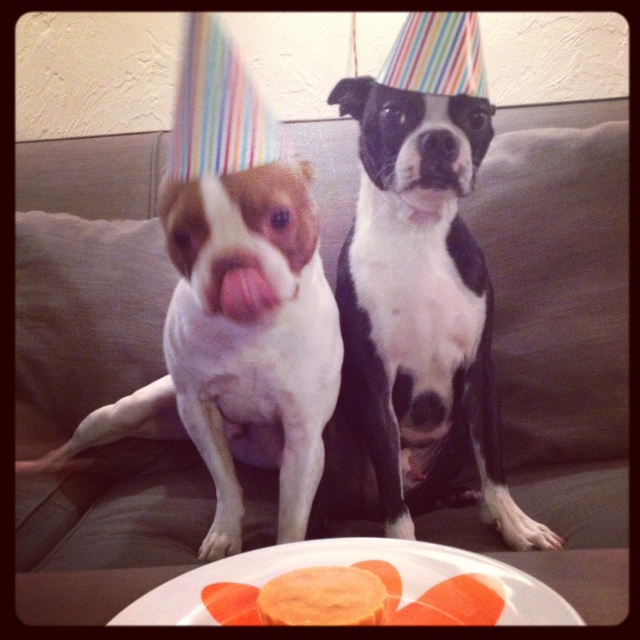 Every family has their own little traditions or occasions to celebrate, ours included. 🙂 This post is a celebration of Ollie. We found him on Petfinder and knew that we had to give this little brown Boston Terrier, a puppy mill survivor, a proper home. A home where he always has a toy to comfort him, a brother to play with, homemade treats to snack on, and someone to cuddle.