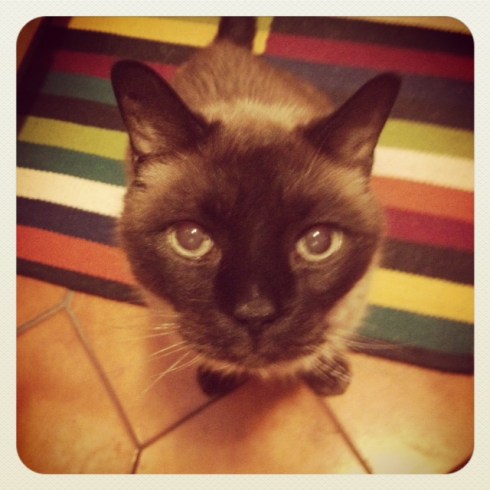 Sitar came into my life in 1999, when he was 4 years old. His original owner was a friend of mine from work, who had bought him from a breeder, yes.. an intentional Maine Coon & Siamese mix. He was the only one in the litter that looked the most like a Siamese cat and fit in the palm of my friend’s hand.