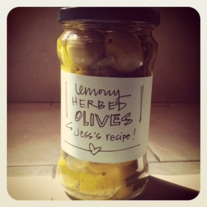 1 jar Organic Green Olives (I used Cat Cora’s Kitchen)