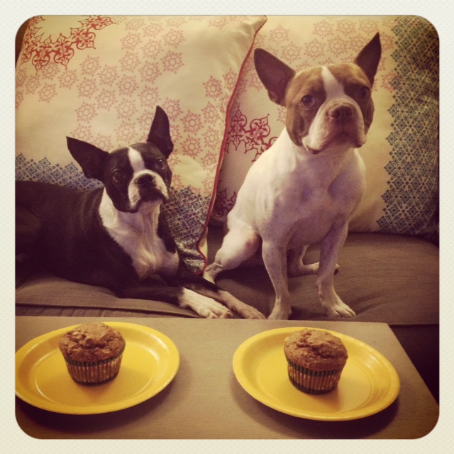 There are a few local cupcakeries that also sell a pup friendly version of their sweet delights, but 1) we love baking 2) we had all of the ingredients in our pantry/refrigerator 3) it’s cheaper…but most important of all, 4) we know exactly what’s inside. And no mystery ingredients means no potential allergens (Stevie has a wicked intolerance to all things poultry). Yay!